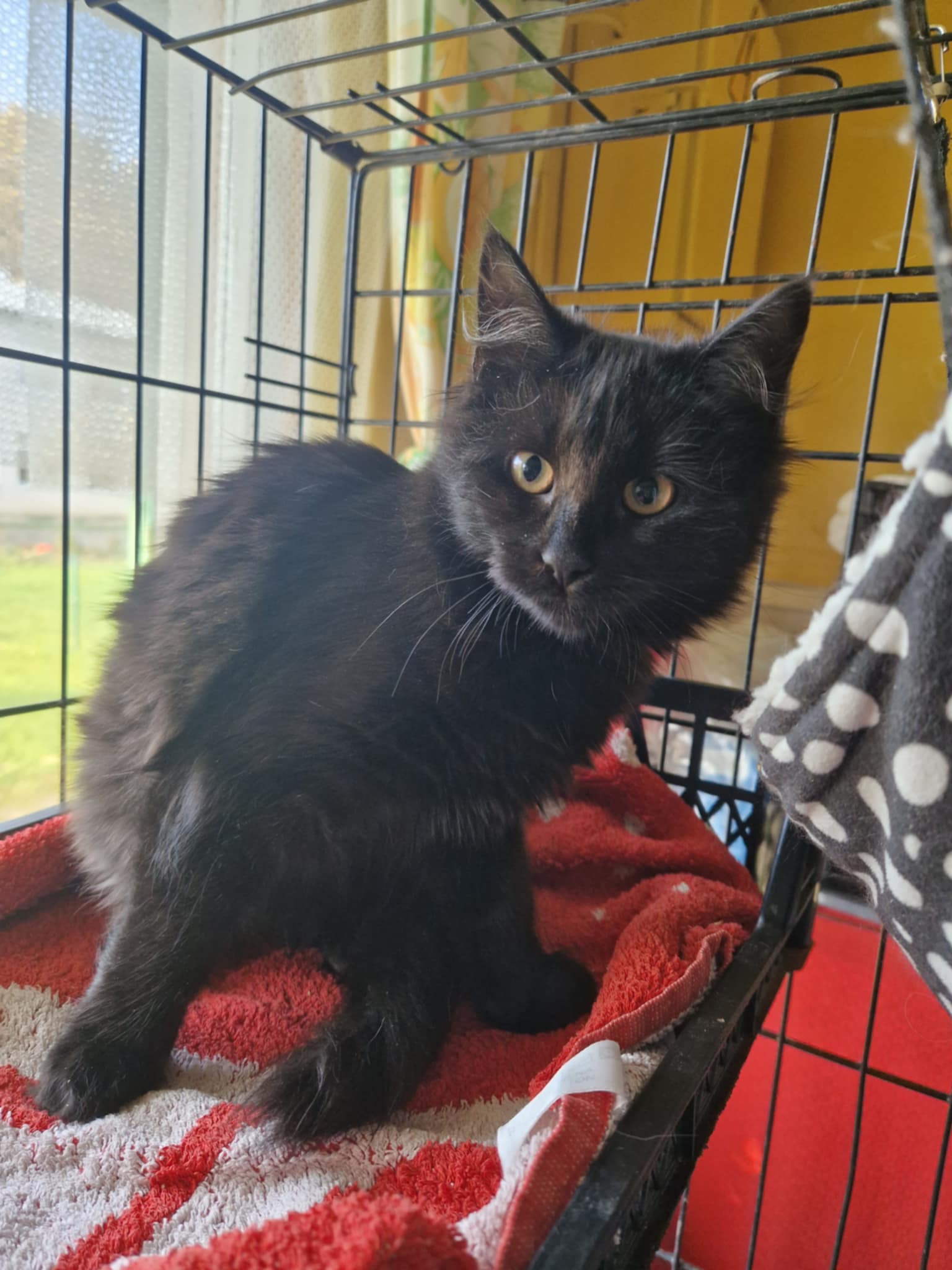 Pärit: Lipametsa, Raplamaa Sugu: Emane Iseloom: Uudishimulik, mänguhimuline, ettevaatlik ja hetkel veel pisut arglik Värvus: Must, poolpikakarvaline Vanus: 6k-1a
